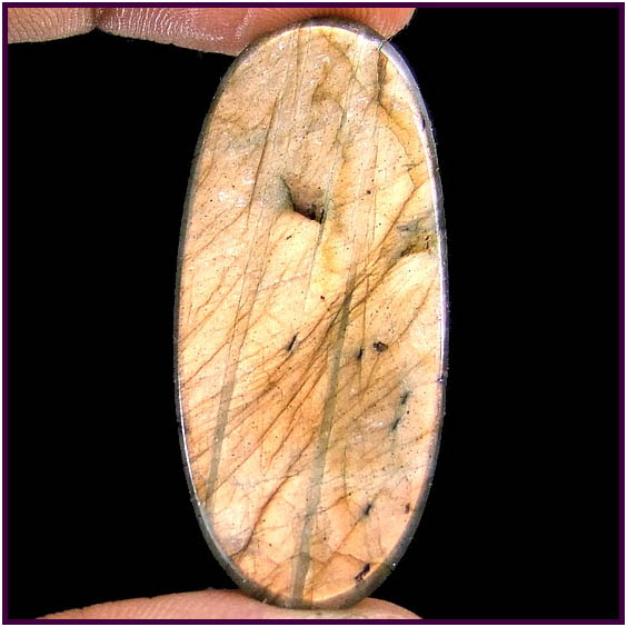 Лабрадорит чрезвычайно редкой оранжево-розовой окраски, обратная сторона обладает эффектом кошачьего глаза